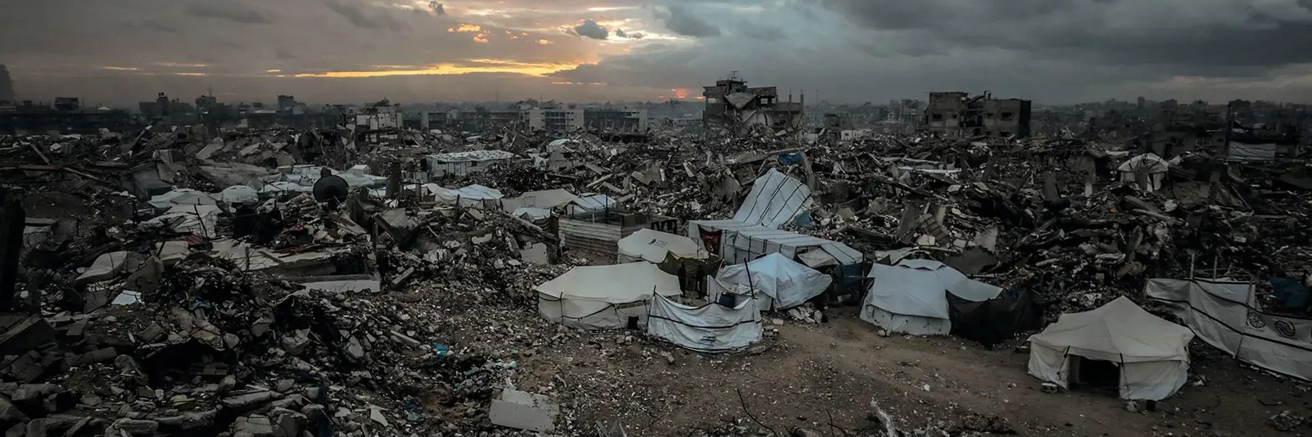 Gegenwärtig werden zwei Millionen Menschen auf weniger als der Hälfte des Gazastreifens zusammengepfercht, während der Rest Gazas systematisch dem Erdboden gleichgemacht wird. Tag für Tag werden Zivilist*innen durch Bombardements und Artilleriebeschuss getötet. Bald werden auch wieder Menschen an Hunger sterben:6 Anfang 2026 hat Israel 37 Hilforganisationen aus Gaza verbannt, darunter Ärzte ohne Grenzen, Care, Medico International und die Caritas.